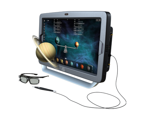 桌面虚拟交互教学一体机与大屏构成的3D虚拟教学区,